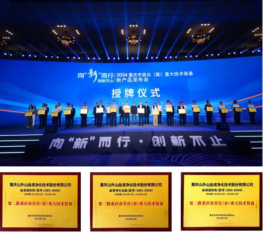 2024年5月12日,2024重慶市首臺(套)重大技術(shù)裝備新產(chǎn)品發(fā)布會上,重慶山外山血液凈化技術(shù)股份有限公司(以下簡稱“山外山公司”,股票代碼:688410)三項產(chǎn)品被認定為第二批重慶市首臺(套)重大技術(shù)裝備產(chǎn)品。