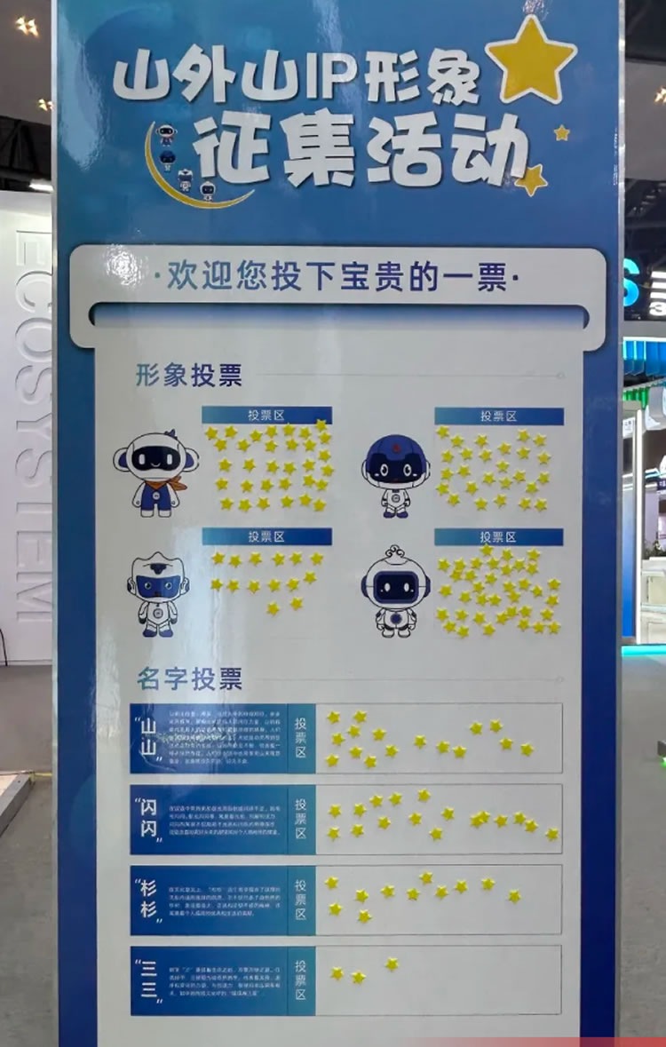 其中,IP形象征名投票環(huán)節(jié)吸引了眾多與會人員前來打卡,為自己最心儀的IP形象投上了寶貴的一票。這個有趣且充滿紀(jì)念意義的活動,讓每一位來賓都留下了與山外山之間獨特而美好的回憶。