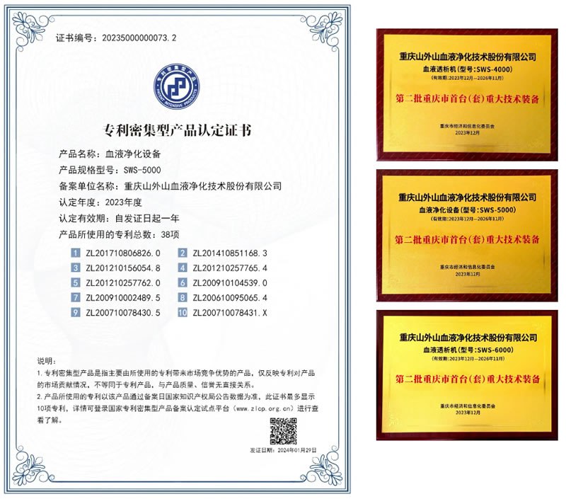 除了入選國家高端醫(yī)療裝備推廣應(yīng)用項目目錄,SWS-5000連續(xù)性血液凈化設(shè)備還通過了首批國家專利密集型產(chǎn)品認定,與山外山SWS-4000、SWS-6000血液透析機一同被認定為第二批重慶市首臺(套)重大技術(shù)裝備產(chǎn)品。這些先進而精良的血液凈化設(shè)備,鐫刻著山外山的技術(shù)創(chuàng)新力量,也見證了中國追趕世界的速度。