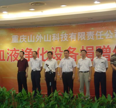 - 2009年,山外山公司向重慶墊江縣捐贈(zèng)價(jià)值143萬(wàn)元的血液透析設(shè)備,并幫助其建立了血液透析中心,建成縣、鄉(xiāng)兩級(jí)急慢性腎衰、多臟器衰竭和中毒等危重癥救治網(wǎng)絡(luò)。